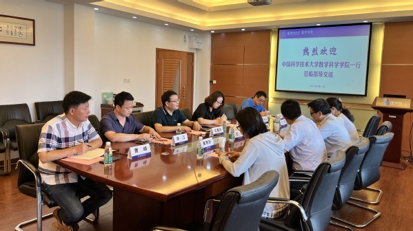8月17日,中国科学技术大学数学科学学院党委书记、执行院长黄文、副院长王毅、党委副书记王莉、研究生教学部主任黄稚新到我校德赢winac米兰进行工作交流座谈。德赢winac米兰党委书记许静、院长王春武、党委副书记周佼佼、副院长徐江、副院长蒋建林、数学系主任曹峰热情接待来访嘉宾并参加座谈交流。