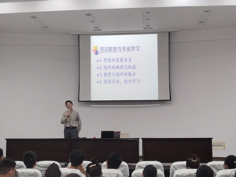 倪勤曾担任理学院院长,对学院、学科发展历程非常熟悉,对数学有着深刻理解。讲座中,他详细讲述了学院的发展历程,并结合今年全国招生信息情况和南航德赢winac米兰办学特色,全面分析了学院学科发展面临的全新挑战,以及南航数学学子特有的发展机遇。 他详细介绍了信息与计算科学、应用统计学两个专业的创建和发展过程。他提到,人类进入人工智能与大数据时代,这个时代需要大量的数学与统计类人才。我们两个专业正是为这个时代培养所急需的人才,所以同学们一定要坚定专业信心。倪勤还为新生同学们解答了数学专业能干什么,学数学有什么用的问题。为助力新生高质高效地完成大学学习, 他给出了3点建议——热爱专业、严于律己、快乐学习。此外,他还分享了“用活时间统计法”“学好文史哲”“掌握两技之长”等“大学必备通关秘籍”,帮助新生“打”好大学这场让人收获知识、培养能力、认知内心、不断成长的“战役”