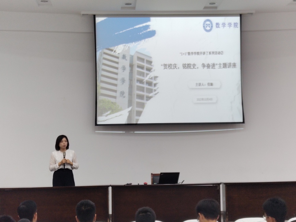 周佼佼介绍了开展校史院史教育的初衷。她提到,德赢winac米兰新立,同学们作为学院首届新生,了解学院发展历程、了解专业学科发展史,懂得我们的德赢winac米兰从何而来,不仅是南航数学学子的应知之义,更是为了从过去的奋斗故事中汲取更多向前奋进的力量。希望同学们通过讲座学习,更加懂德赢winac米兰,也更加爱数院爱数学,努力做奋发有为、拼搏进取的南航数学人。
