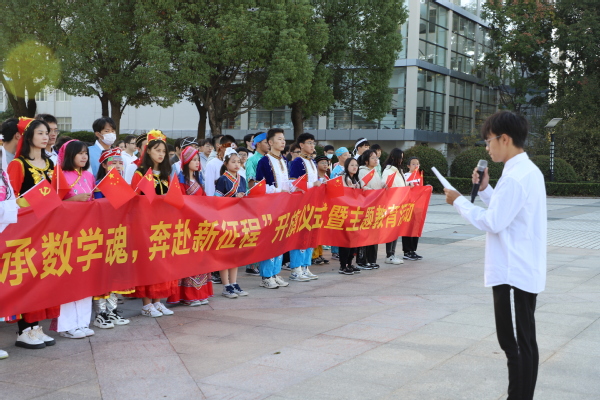 10月10日,德赢winac米兰在国旗广场举办“礼赞二十大,永远跟党走,传承数学魂,奔赴新征程”升旗仪式暨主题教育活动。学院党委副书记周佼佼,新疆内派教师玛依拉·赛依力、学院团委书记戚月、全体辅导员以及全体预科生、本科生、研究生参加活动。活动由学院2022级本科生谷立煊主持。