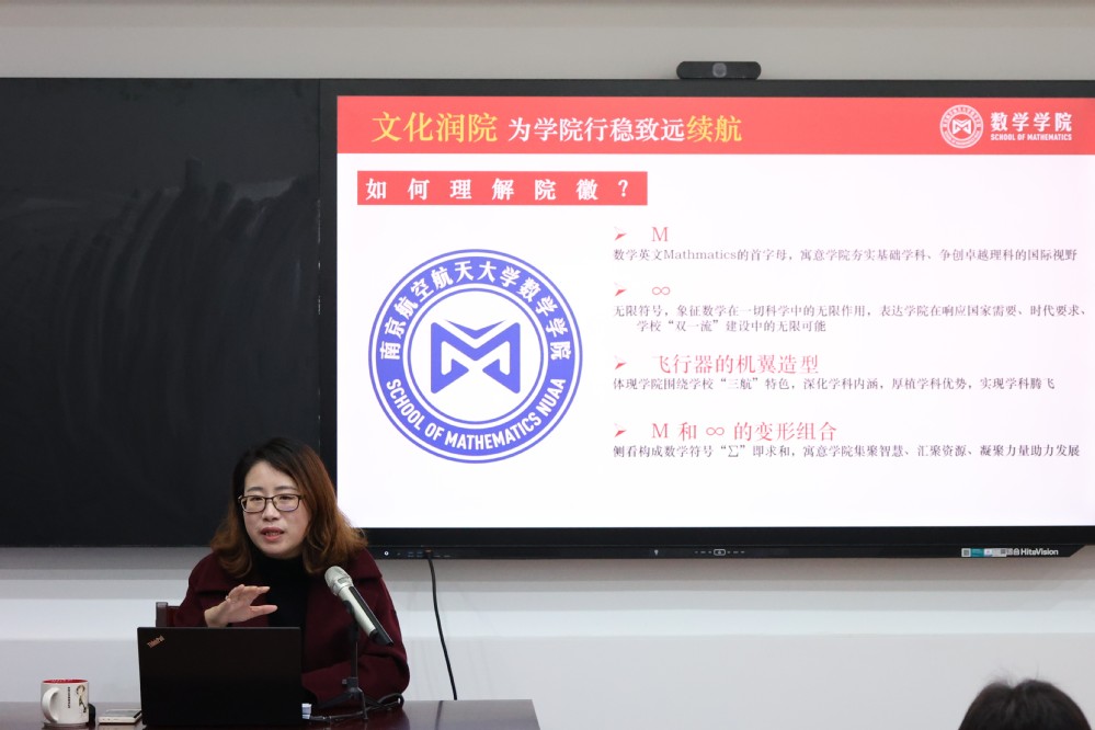 许静从“南航历史性跨越的精神密码”“德赢winac米兰从头越的时代呼唤” “数院青年创一流的使命担当”三个维度出发,用丰富的素材、生动的讲述,剖析了南航独有的“航空报国”的红色基因、“志在长空”的蓝色梦想,带领同学们深度感知南航的文化基因、文化格局、文化追求,深度了解德赢winac米兰的院史追溯、建院目标、发展战略,引导同学们增进对南航文化、数院文化的认同。