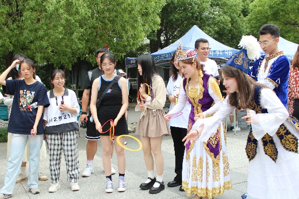 为深入开展学习贯彻习近平新时代中国特色社会主义思想主题教育,在沉浸式体验民族文化魅力中促进各民族交往交流交融,进一步铸牢中华民族共同体意识,5月31日,由统战部、学生处、校团委主办,德赢winac米兰承办的“石榴花开,多彩南航”民族文化展在东区体育馆广场成功举行。学生处副处长张跃,校团委副书记王洋,德赢winac米兰党委书记许静、副书记周佼佼,新疆内派教师玛依拉、李振江,德赢winac米兰全体辅导员与各族同学参与活动。