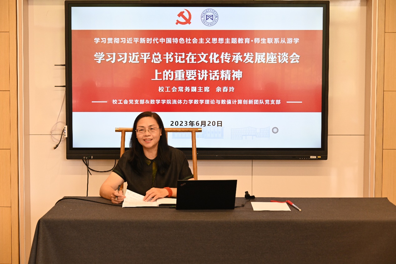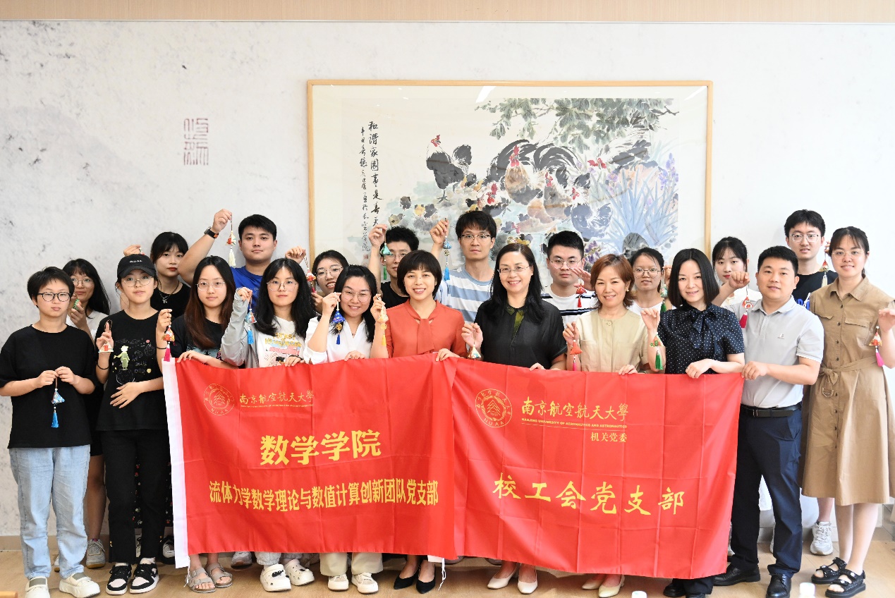 620日,端午节即将来临之际,为弘扬中华民族优秀传统文化,推进学习贯彻习近平新时代中国特色社会主义思想主题教育走实走深,德赢winac米兰师生纵向党支部——流体力学数学理论与数值计算创新团队党支部和校工会党支部在长空学院美育工作室开展联学共建。联学以“坚定文化自信,弘扬传统文化”为主要内容,师生齐聚话端午,共同感悟中华传统文化魅力。校工会党支部书记、常务副主席余春玲,副主席谢瑶,德赢winac米兰党委副书记周佼佼及两支部师生党员共同参加活动。