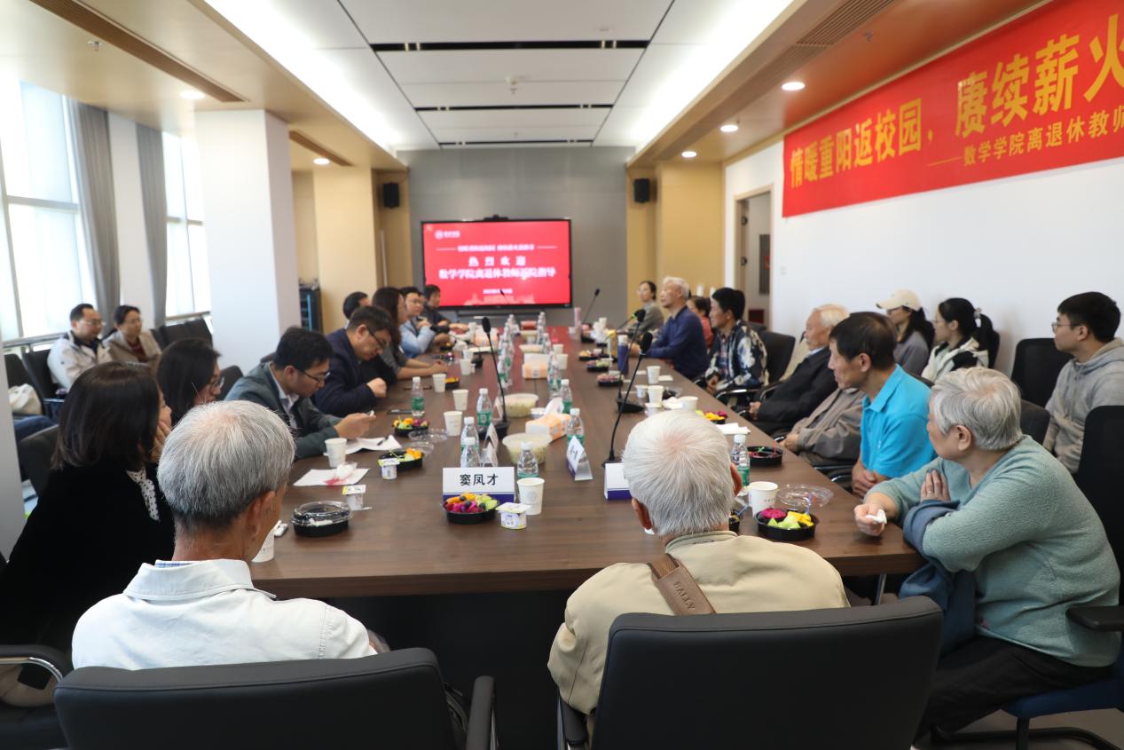 重阳节离退休教师返校座谈会上,院党委书记许静作为主持人对返校的退休老师表示热烈欢迎,并向所有离退休老师送上节日最衷心的问候。院长王春武向离退休教师汇报了新立德赢winac米兰的办学成果和未来规划,他表示,我们都是新时代的数学追梦人,相信在各位老教师的辛勤耕耘、新数院人的接续奋斗下,德赢winac米兰将踔厉奋发,勇毅前行,奋力开创学院高质量发展的新局面。