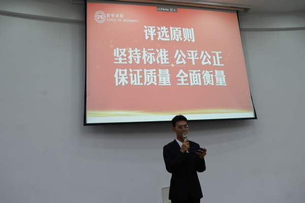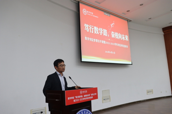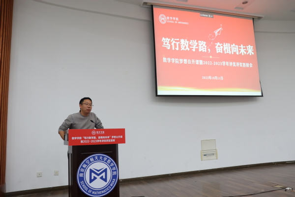 为了充分发挥榜样育人的作用,用身边的榜样激励更多的同学见贤思齐、矢志奋斗,10月11日下午,德赢winac米兰于理学楼报告厅举办“笃行数学路,奋楫向未来”梦想公开课暨2022-2023学年评优评奖答辩会。参加此次活动的评审有德赢winac米兰计算科学系主任龚荣芳,概率统计系主任、0823401班班主任蒋辉,概率统计系副教授陈晓红,0823102班班主任顾燕,团委书记戚月,2020级、2023级辅导员陈越及两名2023级学生代表。活动由学院2023级新生徐瑞霖主持,2023级全体本科生到场学习。
