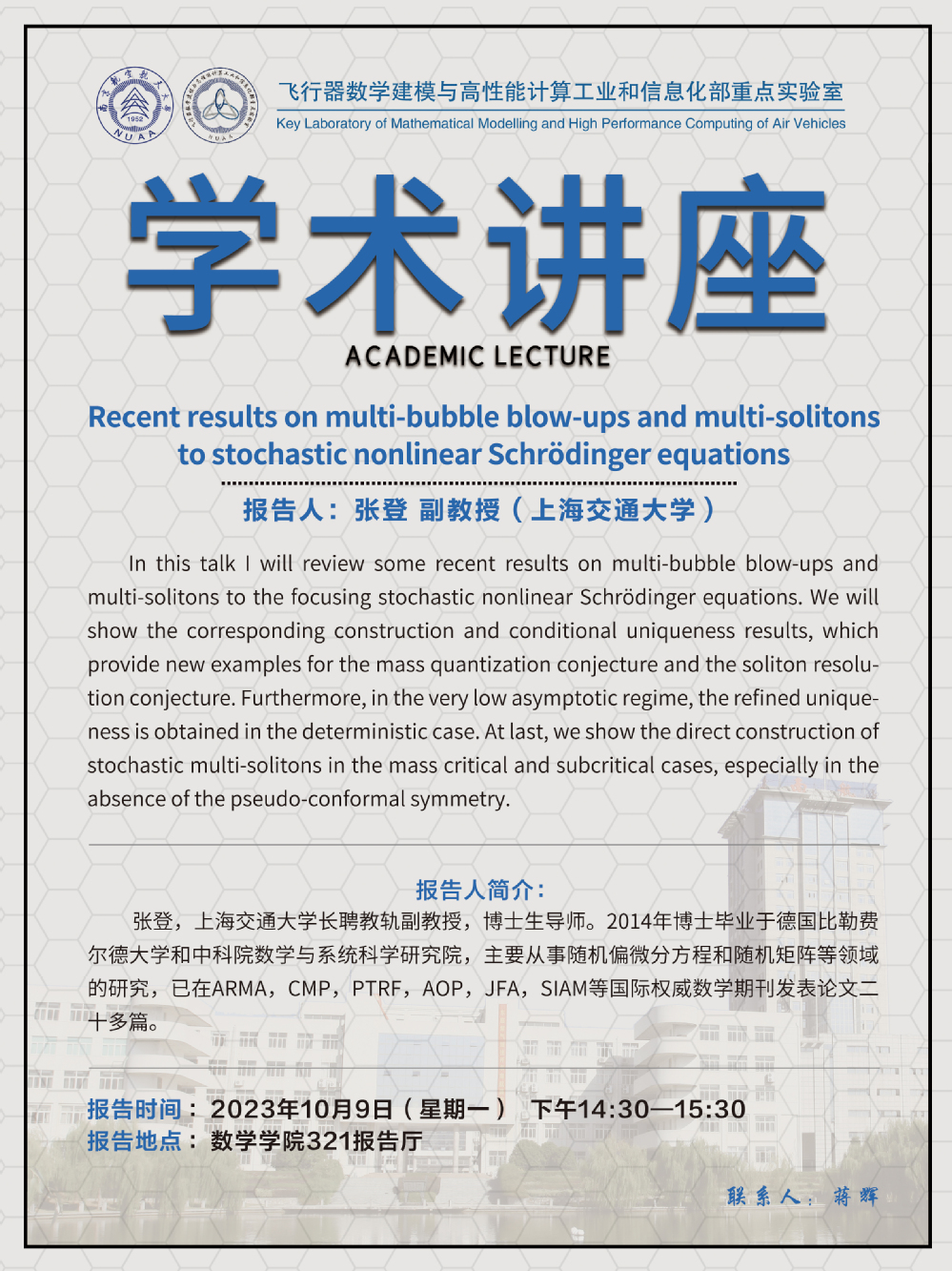 【学术讲座10.9 张登 上海交通大学 】