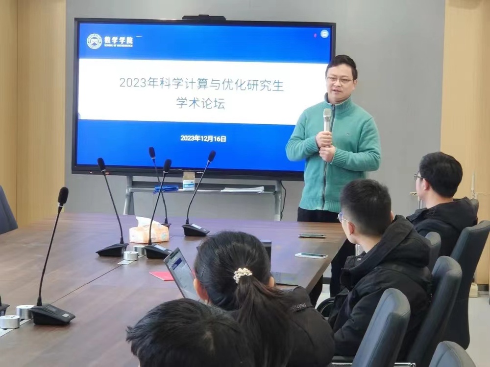 胡志成和龚跃政分别主持上下2个半场的报告会。参会的7名博士、硕士研究生基于数值代数、数值分析、数学物理反问题以及计算流体力学等领域分享了各自的研究成果,报告后的交流互动使参与者们获得了全新的灵感和启发,促进了不同领域间的跨界交流与合作。