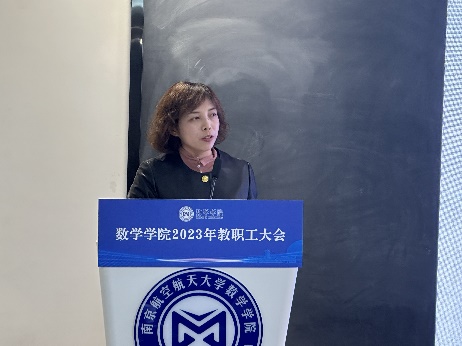 王春武代表班子作《2023年度学院工作总结》报告。他表示,2023年是深入贯彻党的二十大精神和学校第十七次党代会精神的开局之年,也是学院全力推进“理科卓越工程”的关键之年。学院围绕“特色立院、科学治院、人才强院、文化润院”发展战略,深入分析学院、学科面临的形势,抓先机、开新局,以更高的站位、更长的视角、更大的格局谋事干事,圆满完成了全年各项工作,切实推动学院高质量发展。并围绕“理科卓越工程”推进情况、师资队伍建设、科学研究、人才培养、国际交流合作、用房及资产、安全保卫等内容详细报告。