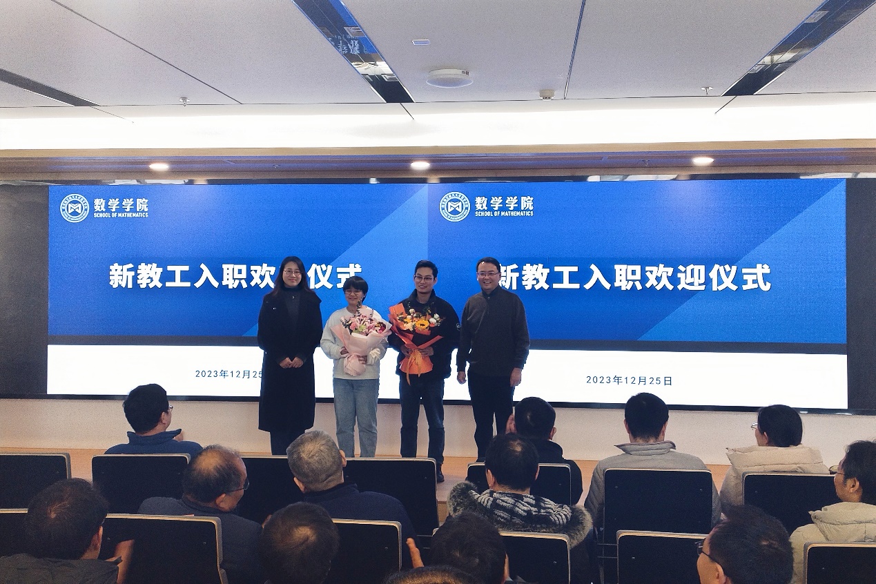 学院举行新教工入职欢迎仪式。学院党委书记许静、院长王春武为朱修涛、刘思佳老师佩戴院徽、赠送鲜花,热烈欢迎两位老师成为德赢winac米兰大家庭的一份子,也希望老师们立足岗位特点,发挥自身优势,将个人发展与学院建设紧密结合,为学院的发展贡献更多智慧和力量。