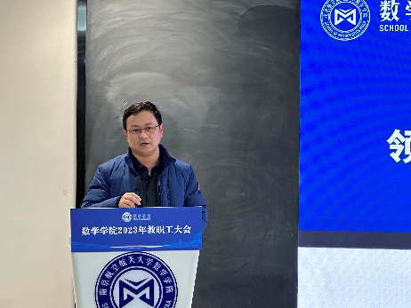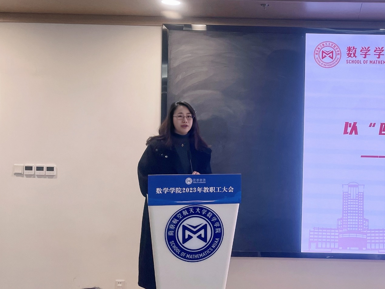 许静代表学院党委从政治建设、思想建设、组织建设、作风建设、纪律建设等方面作《2023年度学院全面从严治党工作总结》报告。她指出在学校党委的坚强领导和全体师生共同奋进下,学院将高质量落实主题教育作为首要政治任务和工作主线,厚基础、重质量、强特色,把牢理论武装“支撑点”,锚定卓越理科“中心点”,聚焦立德树人“关键点”,找准凝心聚力“着力点”,以“融智、融力、融创、融心”四融党建赋能学院各项事业高质量发展,并取得了阶段性成效。下一阶段学院将紧扣“高质量”和“特色化”,持续推进党建业务深度融合,力争引领各项事业取得新突破、新跨越。