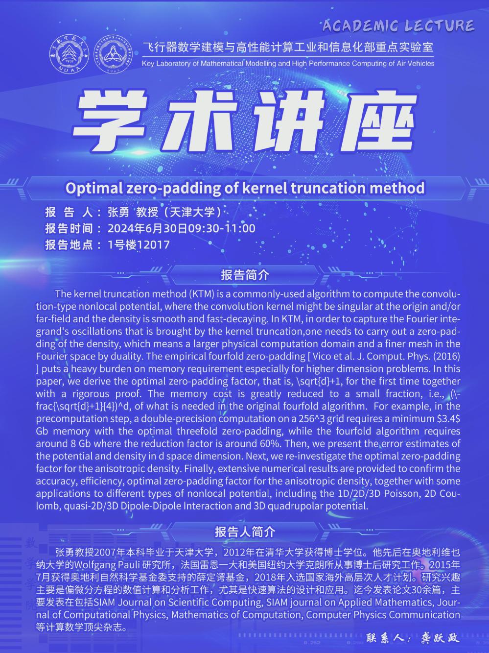 【学术讲座6.30 张勇 天津大学】