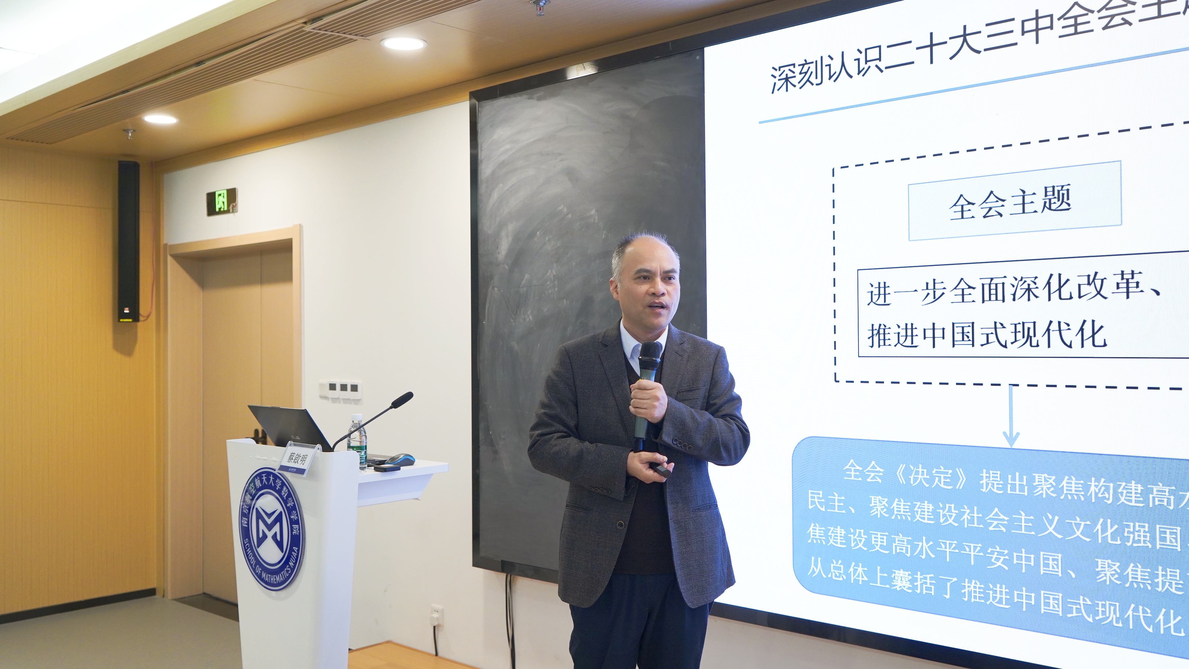 为深入学习贯彻党的二十届三中全会精神,根据校党委统一部署,11月19日,德赢winac米兰举行学习宣传党的二十届三中全会精神校内宣讲团报告会,邀请校内宣讲团成员、经济与管理学院教授蔡啟明作专题辅导报告。学院领导班子成员、师生党员代表近百人参加报告会。报告会由学院副院长龚跃政主持。