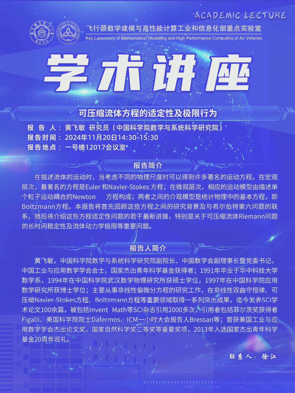 【学术讲座11.20 黄飞敏 中国科学院数学与系统科学研究院】