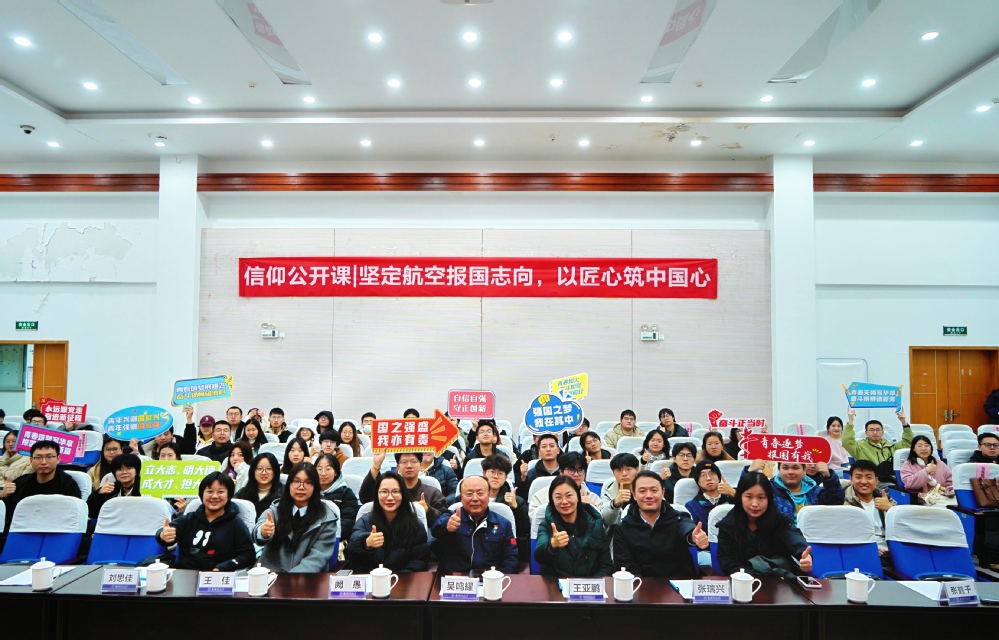 吴鸣耀从中国航空发动机的发展历史与中国航发南京航空动力有限公司的三次创业历程出发,讲述了一代“航发人”贯彻“匠心”精神,为中国航空发动机事业与国防事业筚路蓝缕、艰苦创业的动人故事,阐释了自强不息、艰苦奋斗、永不放弃的创业精神。回首过去,吴鸣耀分享了自身的成长经历。在艰难的条件下,他坚守“择一事,终一生”的“匠心”精神,致力于解决各种技术关键问题、技术改造及攻关难题。展望未来,他勉励同学们接过中国国防科技事业的接力棒,“丹心报国酬壮志,动力强军献毕生”,在与祖国同频共振中实现自身价值。