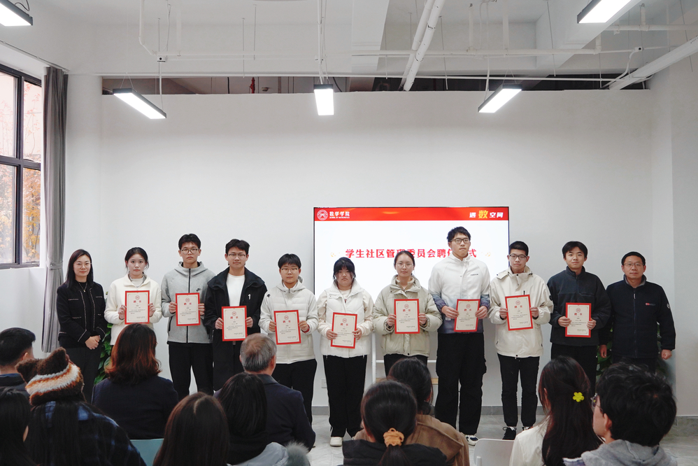 为充分发挥学生主体性作用,建立健全学生自我教育、自我管理、自我服务、自我监督的工作体系,搭建起学生社区治理与服务的桥梁,“遇数空间”一站式学生社区管理委员会正式成立。王亚鹏、蒋辉共同为学生社区管理委员会首届成员颁发聘书。