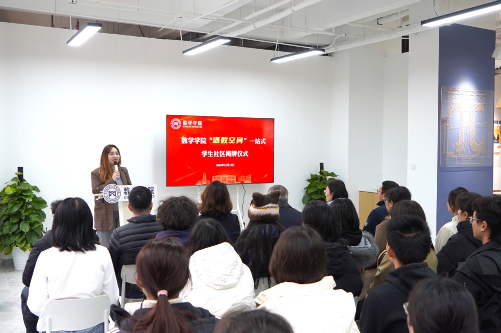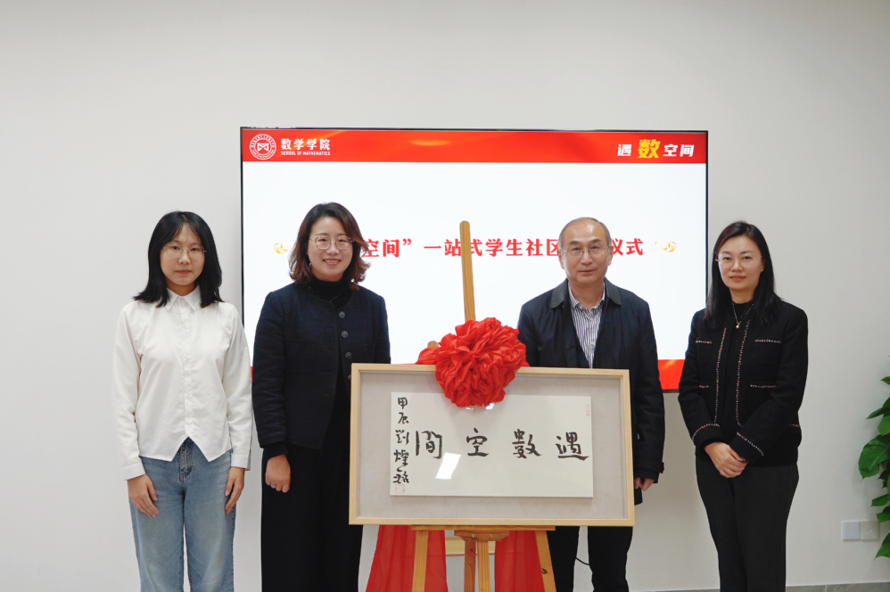 刘灿铭、许静、王亚鹏及学生代表共同为一站式学生社区揭牌。“遇数空间”四字为刘灿铭亲笔题写,不仅寄托了对数院学子们的美好祝福,更为一站式学生社区建设赋予了独特的艺术魅力和深厚的文化底蕴。