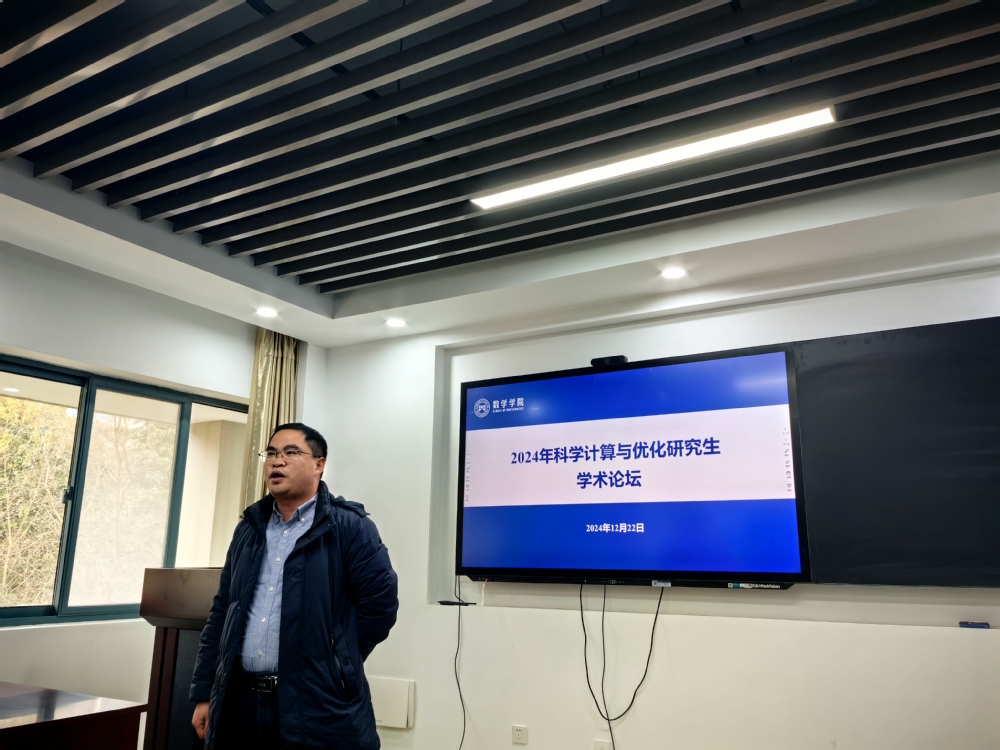 为了促进研究生内部“立足学术、加强交流、锻炼表达、志在提升”,推动研究生科研领域的宽度与深度发展,拓展研究生科学研究的视野和范围,提升研究生问题凝练能力,锻炼研究生的学术表达能力。继2023年顺利举办首届科学计算与优化研究生学术论坛后,在追求学术卓越和深化学术交流的共同愿景下,德赢winac米兰计算科学系第二届“2024科学计算与优化研究生学术论坛”于2024年12月22日上午在德赢winac米兰227视频会议报告厅顺利举办。副院长龚跃政、院长助理潘茂东、计算科学系主任龚荣芳、教师代表以及研究生等20余人参加。论坛由尹晨主持。