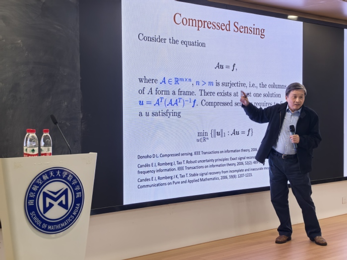 报告中,沈院士以深入浅出的方式阐述了数学在AI和大数据时代的核心作用。他从小波理论的发展切入,结合图像处理、压缩感知等实际应用,生动展示了数学如何为数据科学提供理论基础与方法支撑。沈院士还探讨了数学家在大数据时代面临的机遇与挑战,鼓励青年学子夯实数学基础,勇于探索交叉学科的前沿问题。报告内容既有理论高度,又贴近实际应用,引发了现场师生的强烈共鸣。