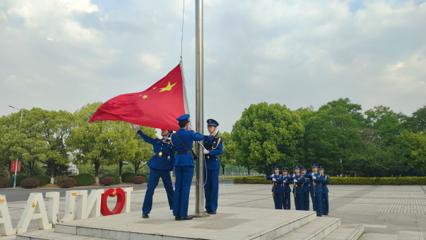 清晨7时整,升旗仪式在国旗班庄严的出旗与国歌奏唱中拉开序幕。全体师生肃立注目,五星红旗冉冉升起,与晨光交相辉映。