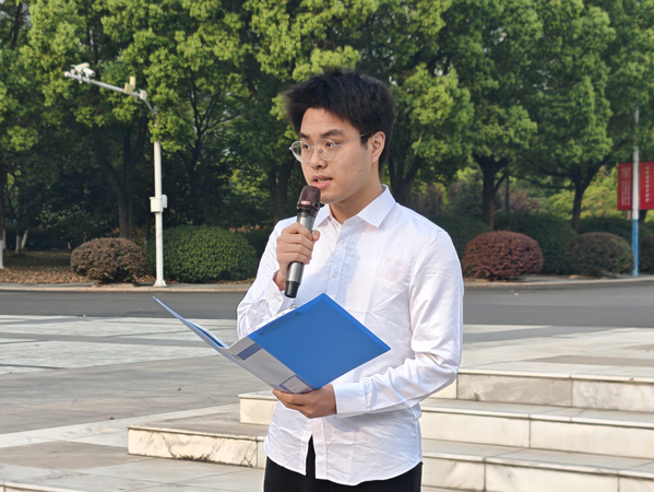 学生党员代表,来自0823401班的朱祥培同学从“阅读与使命”的视角展开,呼吁同学们以阅读校准人生坐标。他以数学坐标系为喻,提出“横轴是专业积累,纵轴是理想信念”,唯有在阅读中延伸两者,方能锚定时代坐标,践行青年担当。