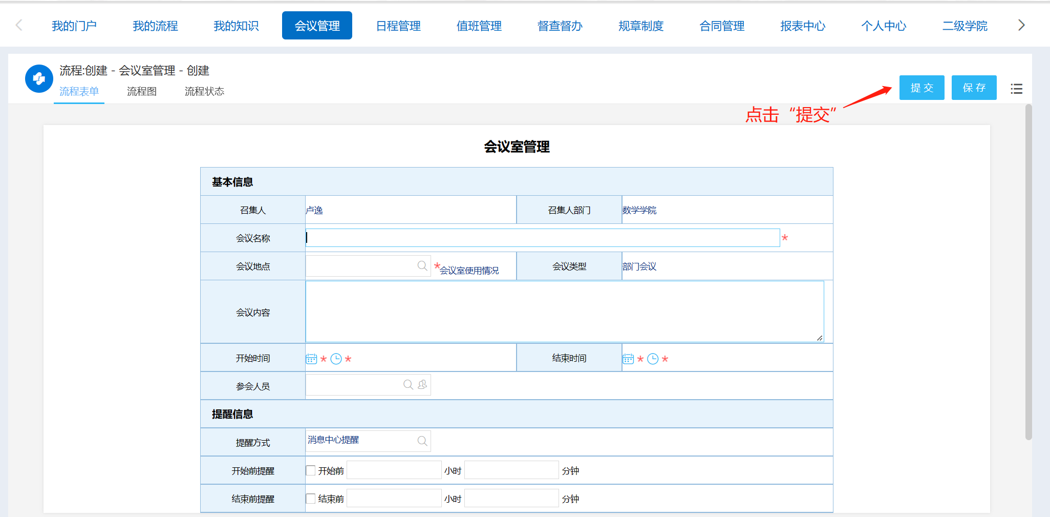 步骤③:填写会议室申请基本信息。
