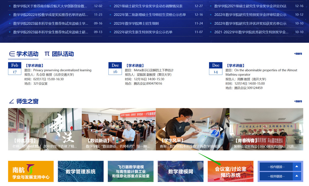 步骤②:学院官网点击右下角“会议室/讨论室预约系统”。